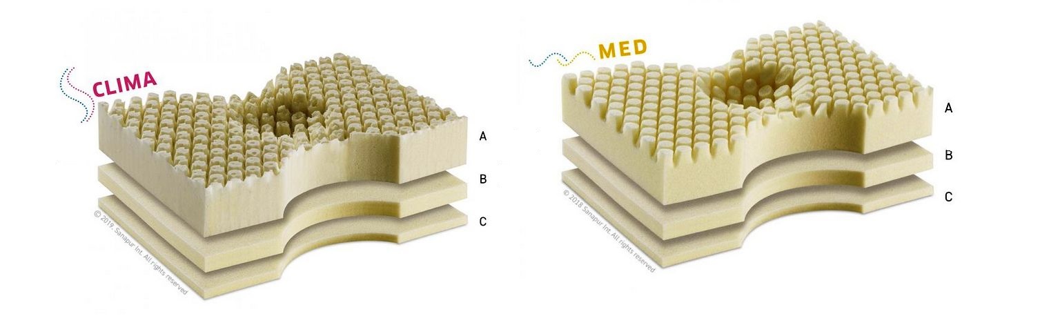 Alle Sanapur-Modelle verfügen über eine Kopf- und Schulterzone, eine Lordosestütze, eine Beckenzone sowie eine Waden- und Fersenzone.Diese spezielle Aufteilung ermöglicht gesundes und schmerzfreies Schlafen in jeder Liegeposition.